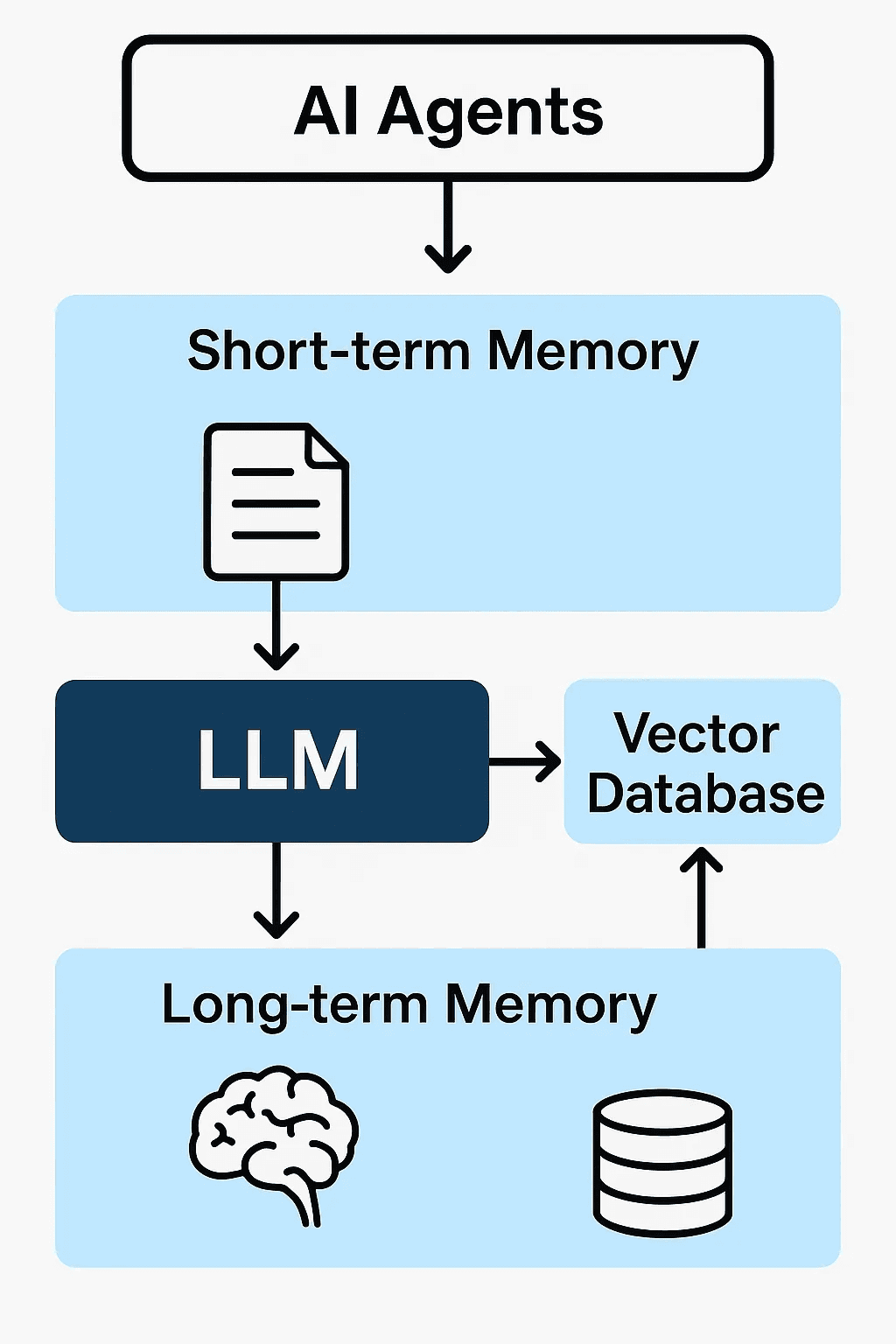 Memory is not just a component. Infact it’s the core intelligence layer that makes AI agents human-like. Short-term memory ensures real-time contextual fluency; long-term memory provides continuity and learning.