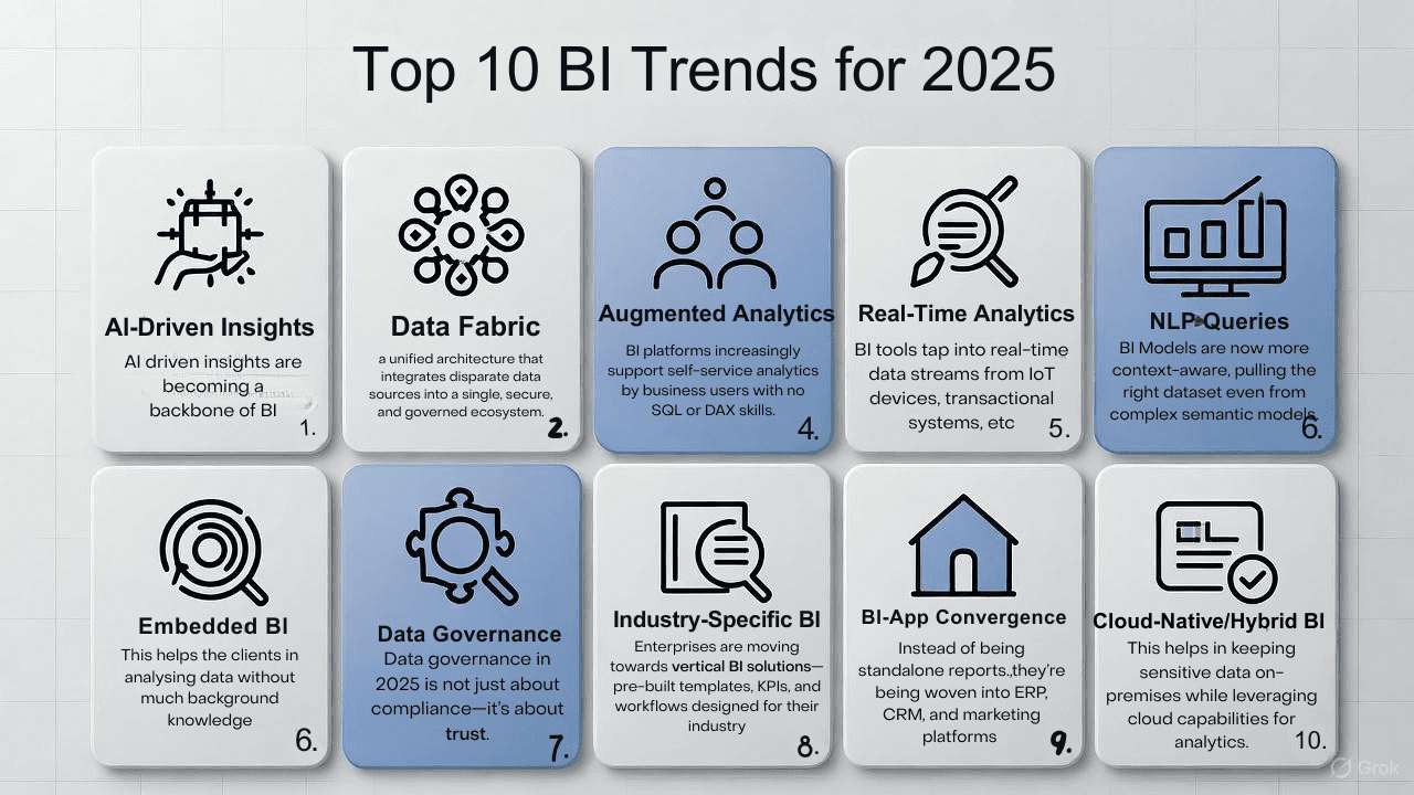 From AI-powered analytics to augmented decision-making and cloud-native BI architectures, the trends shaping BI this year are setting the tone for the decade ahead. And for enterprises, the stakes are high: harnessing these innovations could mean competitive advantage; ignoring them could mean falling behind.