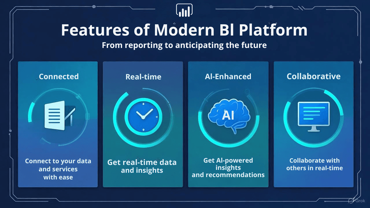 Intelligence solutions are integrated systems and tools that collect, process, analyse, and present business data in a way that supports strategic decision-making. Unlike older BI systems that required manual data preparation and produced static charts, modern BI platforms are: