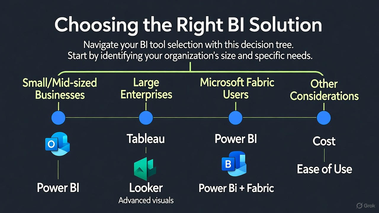 Selecting the right BI tool depends on your data maturity, team skills, and integration needs: